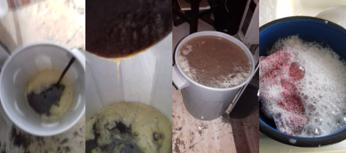 Em uma vasilha plástica de 20 litros de capacidade, coloca-se a água quente e a soda mexendo com colher plástica ou madeira até derreter. Acrescente o óleo usado, coado, misture e coloque o álcool. Continue mexendo até escurecer e começar a engrossar. Levante a colher e fica uma nata grudada nela. Vá acrescentando a água aos poucos. Pode-se colocar chá de alecrim, camomila, erva doce ou outro aromatizador que desejar.